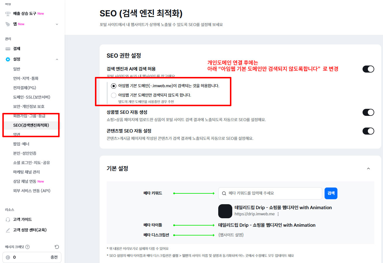 아임웹 검색최적화 설정 – SEO 설정