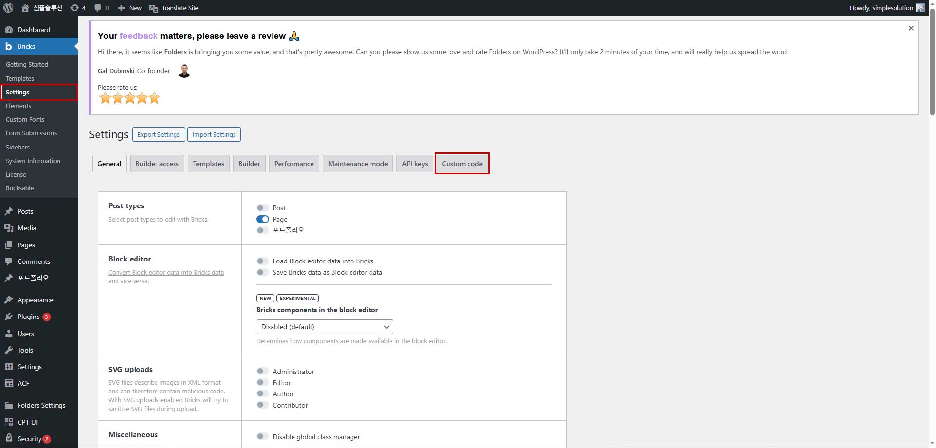 관리자 로그인 후 해당 페이지 빌더로 들어갑니다.