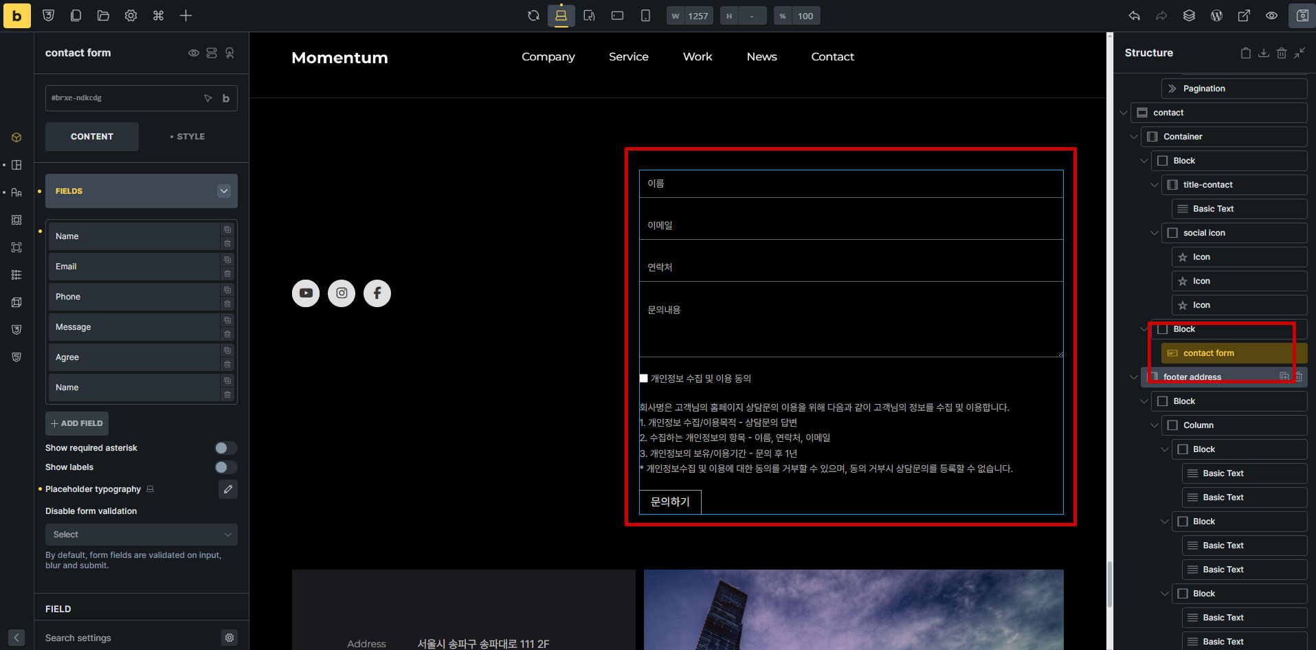 관리자 로그인 후 해당 페이지 빌더로 들어갑니다.