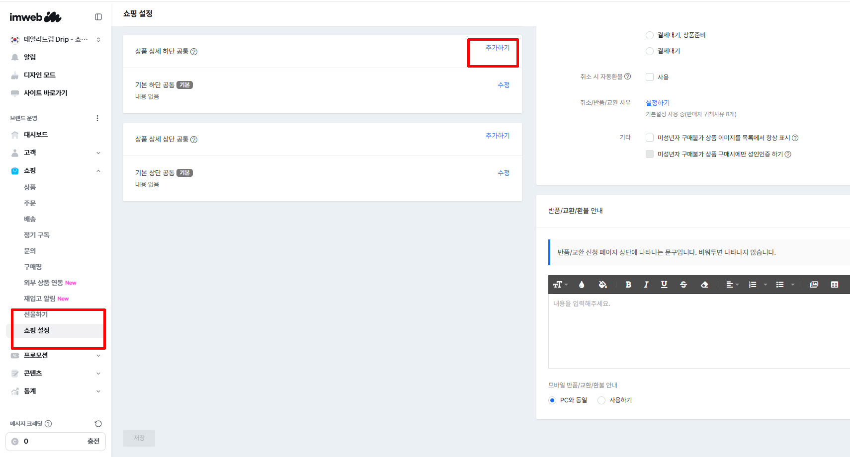 아임웹 쇼핑몰 필수 기본 설정 방법입니다.